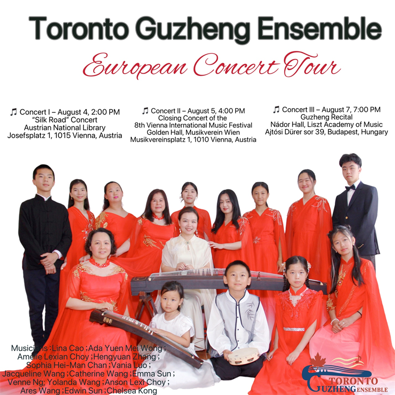 近日,由旅加古筝演奏家曹丽娜(Lina Cao)领衔的多伦多古筝室内乐团成功完成欧洲巡演三大站演出。不仅在世界音乐舞台展现了古筝的独特魅力,更以跨文化的音乐实践推动了中国民乐在国际上的传播,成为海外中国古筝室内乐团中的一面旗帜。
