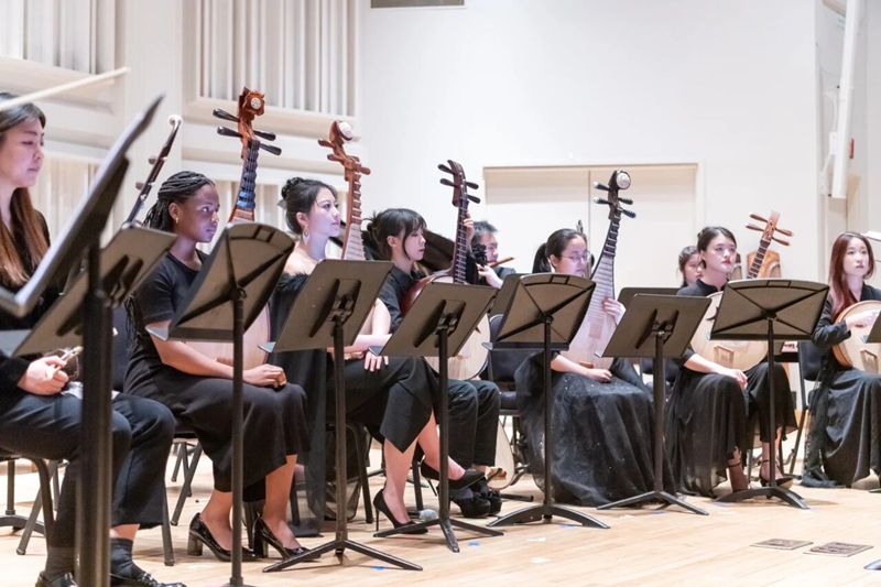 △ 2025年1月,在纽约林肯中心举行的“春之声”中国新年音乐会中,琵琶专业学生董进欧(本科24级、CMC 25')与巴德当代乐团合作并担纲琵琶独奏。