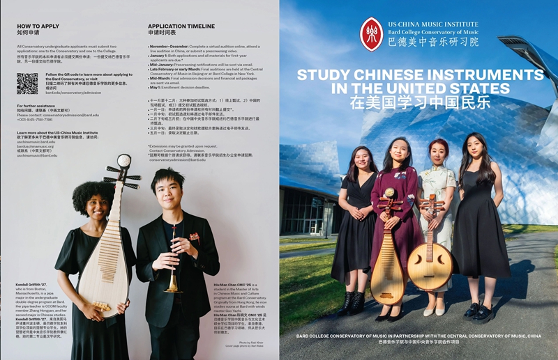 巴德学院(Bard College)位于纽约市以北2小时车程,创建于1860年,是一所历史悠久、注重表演艺术和跨学科教育的私立文理学院。巴德学院的音乐学院(Bard Conservatory)为学习西方和中国乐器的学生提供严格的专业培训。在世界著名作曲家谭盾担任院长的领导下,巴德音乐学院致力于培养能力全面的音乐家,既是表演者、学者,也是全球社区的一员。