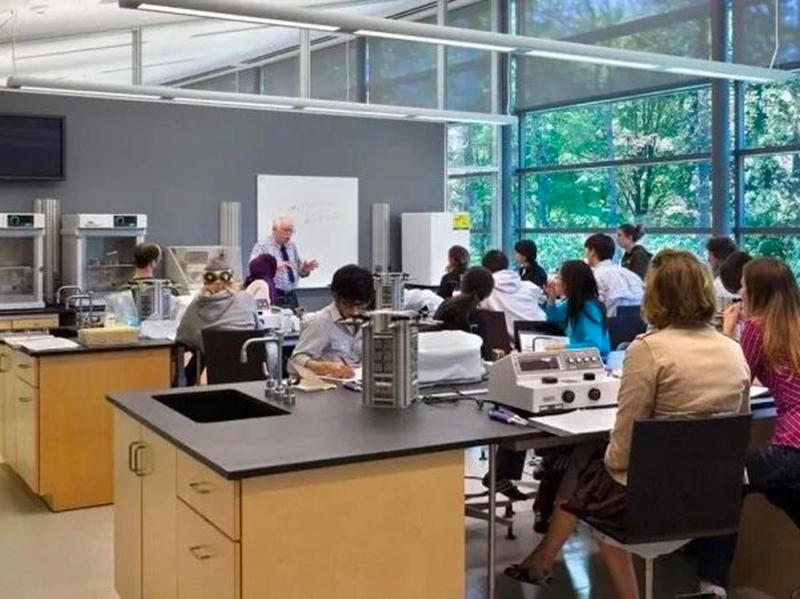 △ 图为学生在实验室上数理课程。