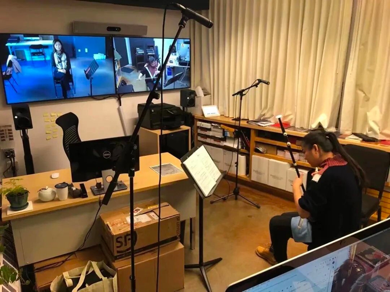 △ 图为二胡学生与中央音乐学院于红梅教授通过远程视频教学系统上课;