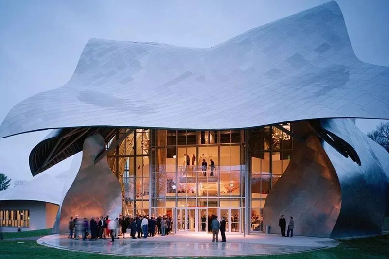 图为校园里的费舍尔表演艺术中心,由著名建筑师Frank Gehry设计,常举办艺术盛会。