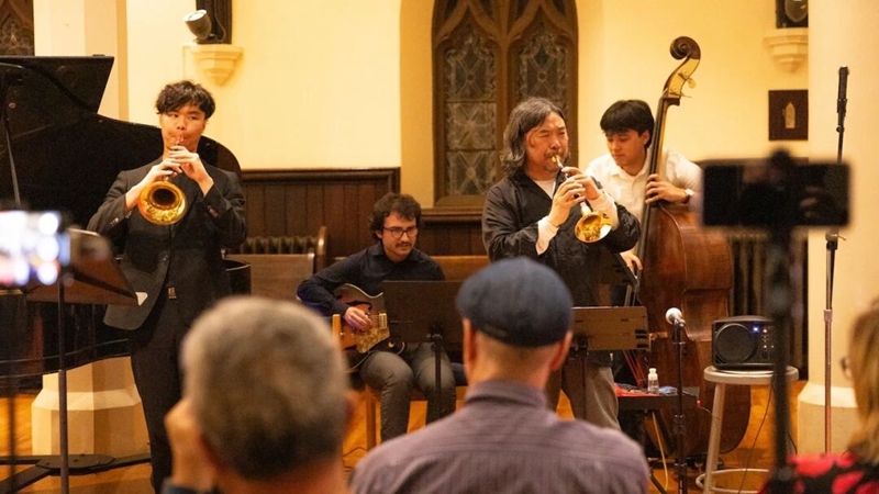 △ 陈晓文(CMC’25)与导师郭雅志及特邀艺术家共同演奏
