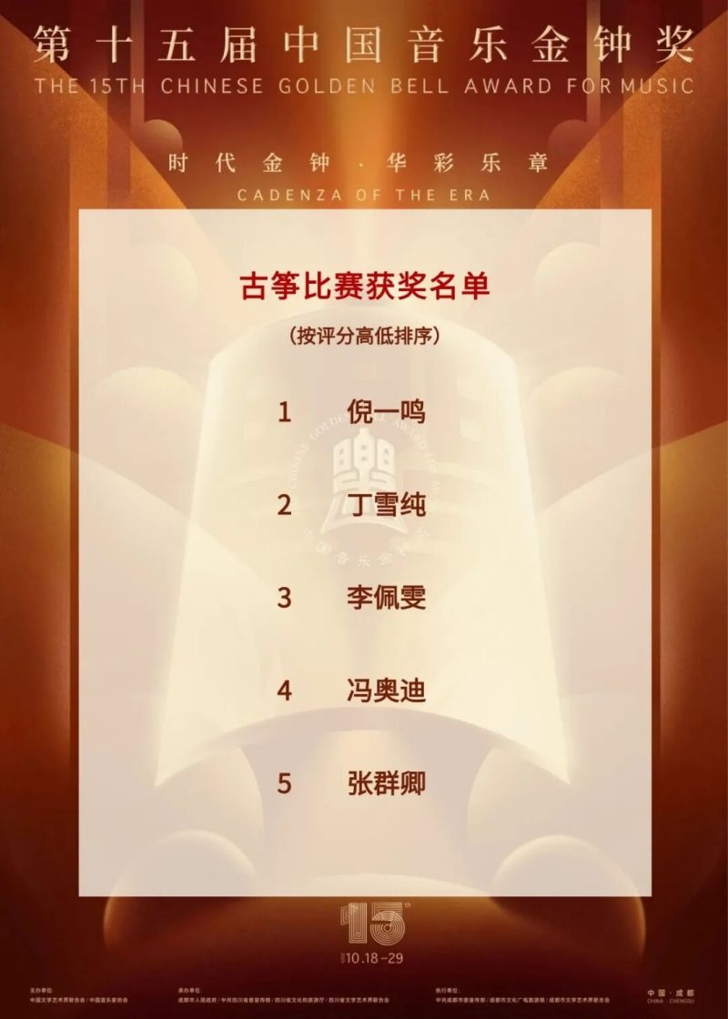 10月26日,第十五届中国音乐金钟奖古筝比赛决赛圆满结束,现将名单公布如下: