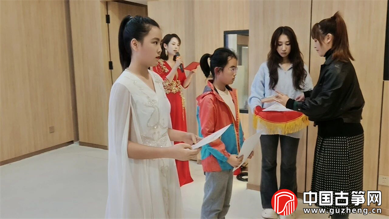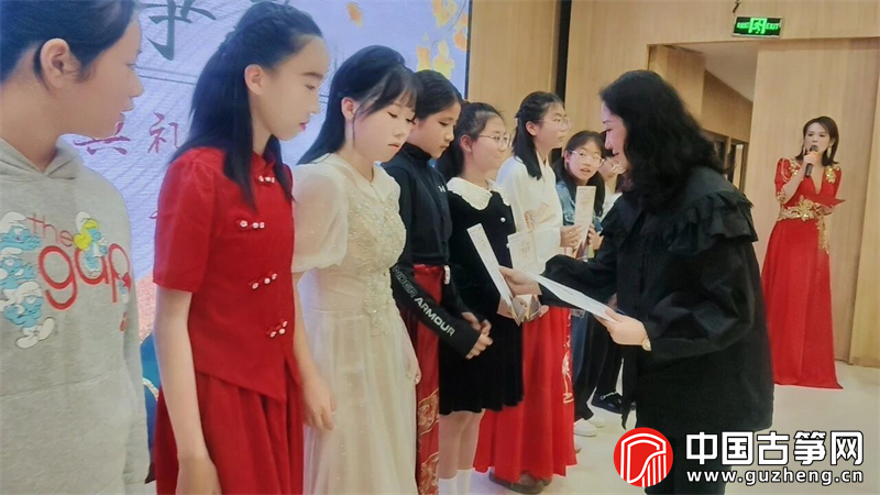 筝会副会长林怡,段银莹,刘蕊,张雅雯为获奖选手及优秀教师们颁奖!