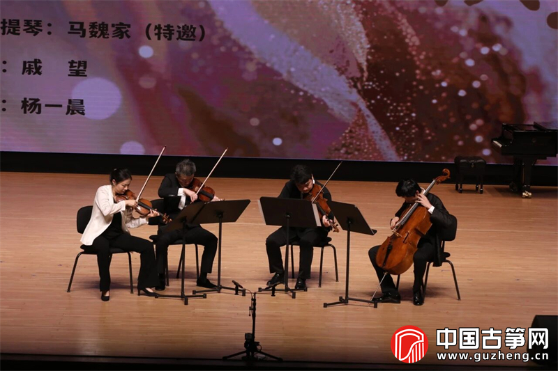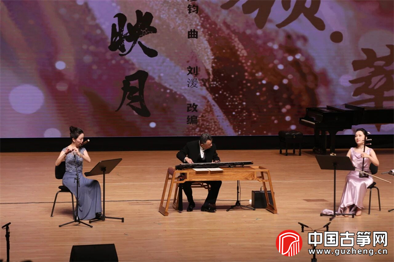 无论是《我爱这土地》中对故土的深情眷恋,抑或《我不朽的里拉琴》那细腻的抒情,女高音石琳(声乐歌剧系副教授)依靠其扎实的气息控制与精准的共鸣处理,情感饱满而不失含蓄。勾抹托摇,苏畅(民乐系副教授)在指尖的动静虚实之间摹写出《枫桥夜泊》的落月清辉、渔火朦胧;和静恬逸,陈雷激(民乐系教授)以吟猱中的清浊迟速为新编作品《二泉映月》注入风骚雅致,不失《太古遗音》之风。倘若说古琴在这首乐曲中所呈现的意象为静凝青寥、阴晴不定的月,那么高白的二胡与冯天石的箫,则在丝竹合和中成为了细流涓涓的泉,悠远婉转,使得全曲并不似华彦钧原版那般凄凉,而更有自然意象的清幽之感。
