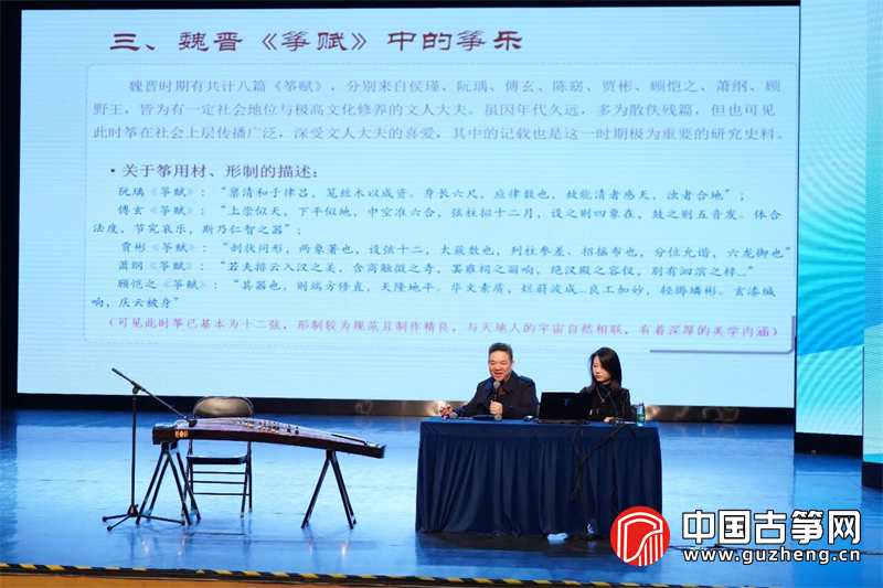 讲座中,王中山教授还结合自身演奏与教学实践,分享了在古筝技法创新、曲目创作与教育推广方面的深入思考。他特别指出,陕西作为古筝艺术的重要发源地,在“秦筝”流派的形成与传承中贡献卓著,不仅形成了独具特色的陕西筝乐风格,更依托西安音乐学院等专业院校,系统推动了古筝教育、创作与理论研究。在当代,应持续推动艺术院校教育与民间传承的“双轨并行”,促进各流派交融互鉴,让传统艺术在新时代焕发蓬勃生机。