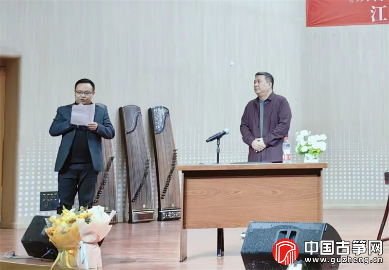 讲座由内江师范学院音乐学院邓川副院长主持。他代表学院对江澹曦教授及四川筝会的到来表示热烈欢迎,并高度评价了江教授及其带领的川音古筝团队在演奏、教学与学科建设方面的杰出成就。