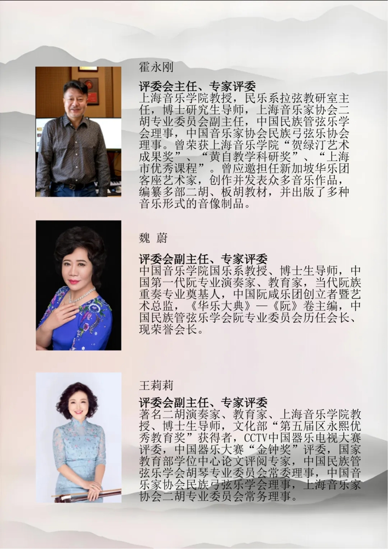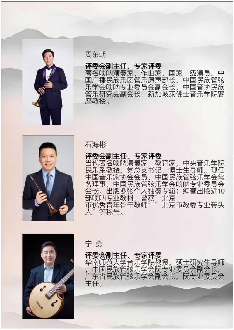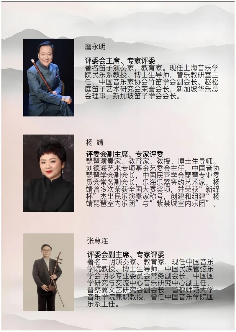 在比赛期间,组委会特邀请多位国乐名家为选手开展讲座活动,让选手们近距离感受艺术魅力,学习更多相关专业知识,扩大眼界,讲座题目另行通知。