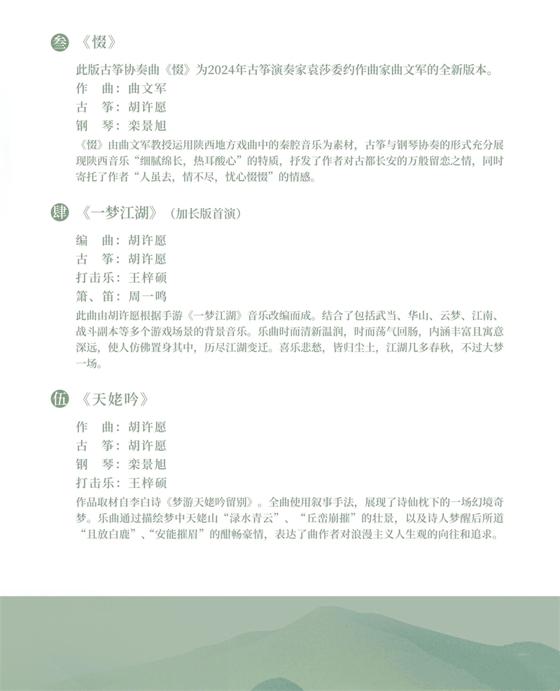 2024年1月央央古筝新作品《天姥吟》乐谱由上海音乐出版社出版发行。