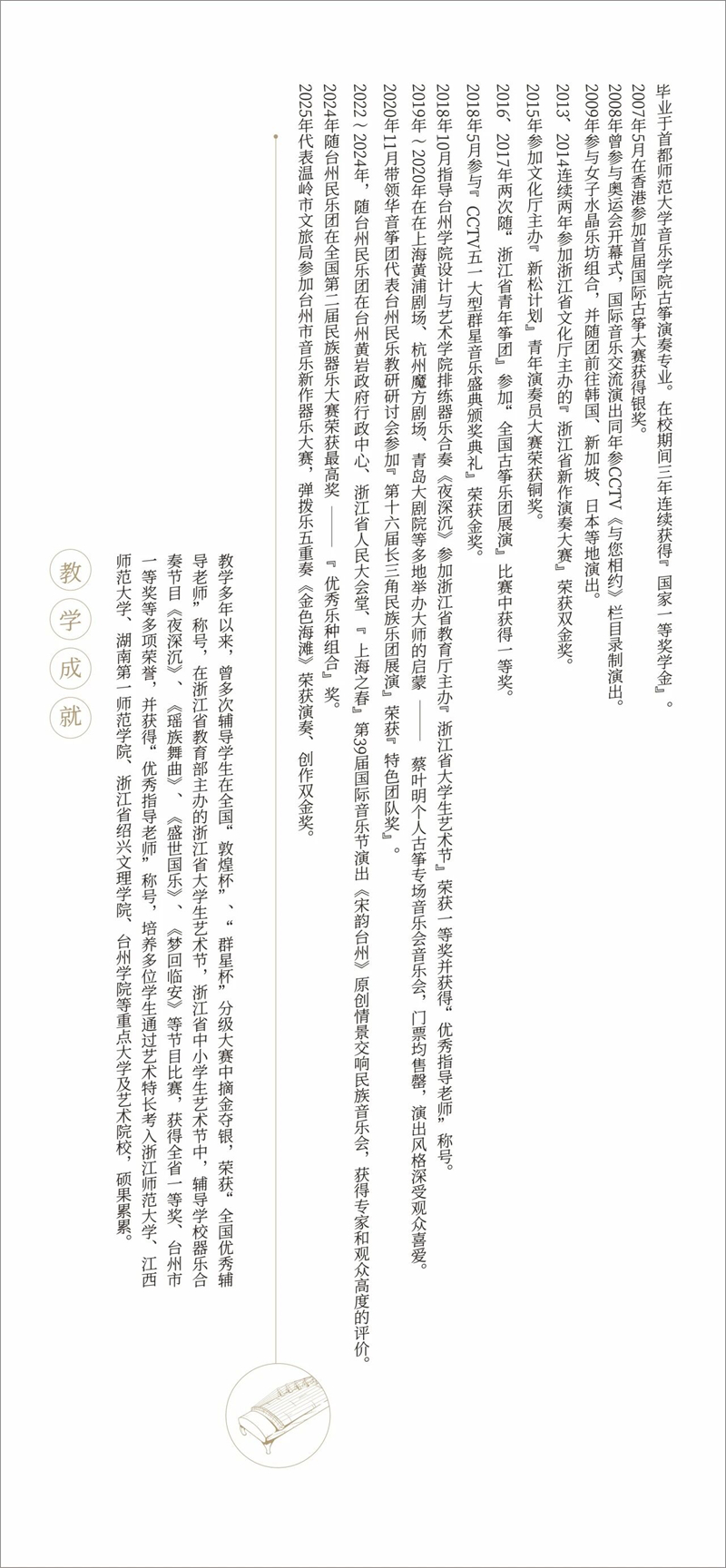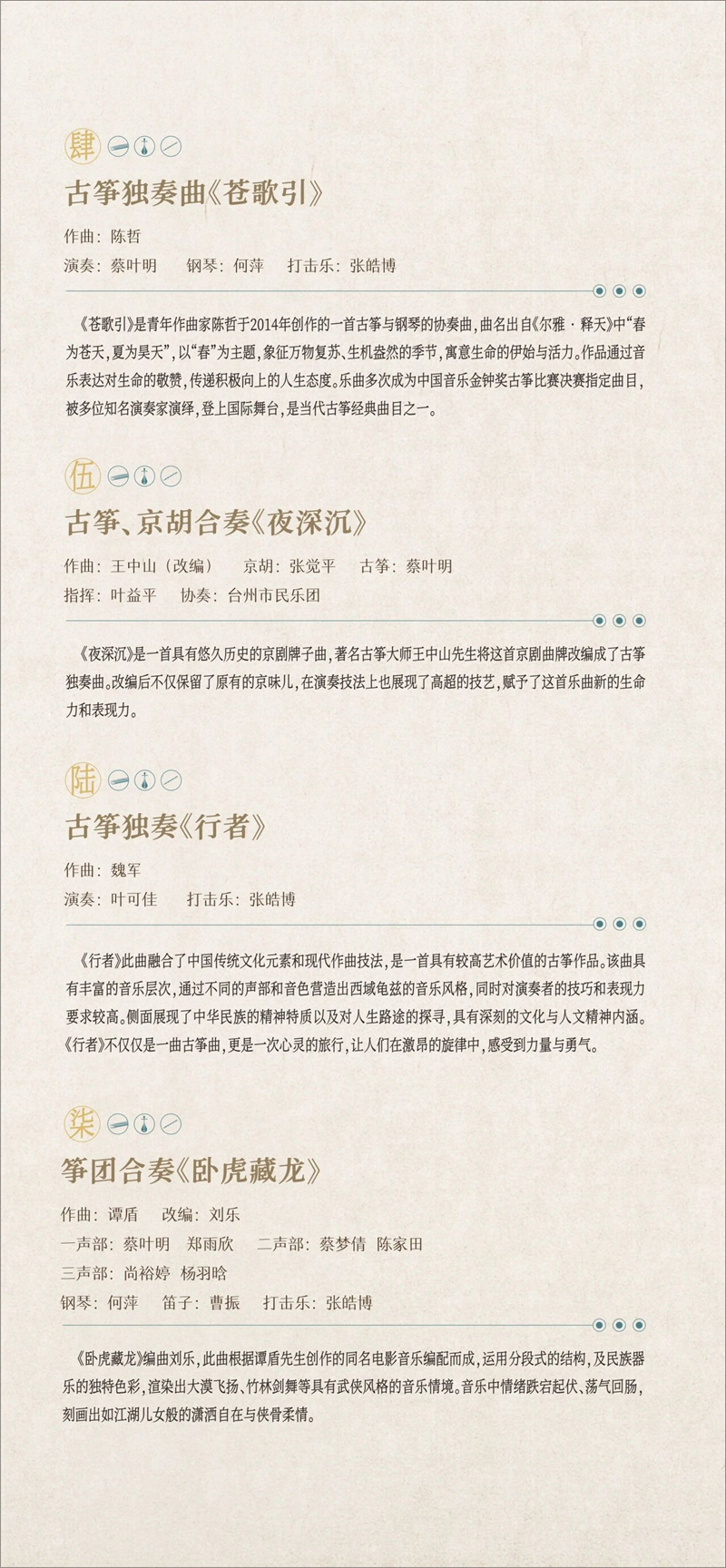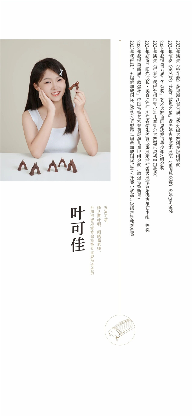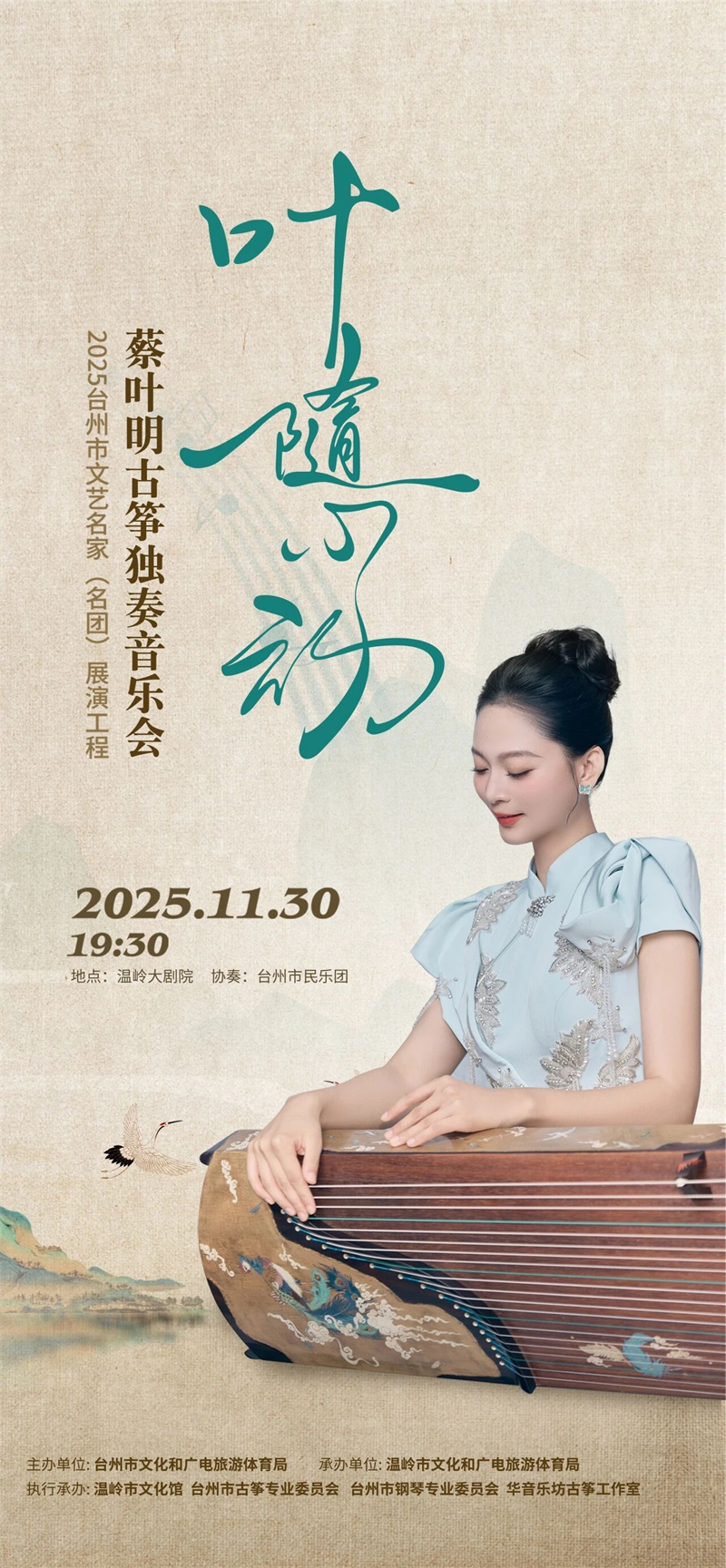 古筝,被誉为“东方钢琴”,在两千多年的流传中,承载了中华文明的音乐灵魂。叶落弦鸣,心随韵动。台州市文艺名家(名团)——蔡叶明古筝独奏音乐会,11月30日(周日)晚7:30,与您相遇温岭大剧院。邀您聆听指尖流传的东方诗意,感受筝韵传递的温暖与热情。